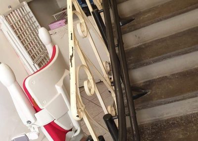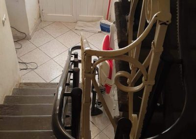 Siamo qui di fronte ad una tipologia di installazione di montascale molto tipica, e per questo significativa da illustrare: bisognava installare un “montascale per anziani” su una scala curvilinea, una scala un po’ datata e non molto larga, come se ne trovano ancora molte in Italia, specialmente nelle abitazioni di non recente costruzione.