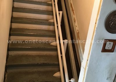 Come è possibile vedere dalle fotografie, la scala non era di recente costruzione e in più non era nemmeno molto larga: una sfida tecnica che i nostri tecnici hanno risolto grazie all’installazione di un montascale a poltrona modello Style, che una volta richiuso lascia libera una buona porzione di spazio. Il montascale installato adotta una solida guida bitubo.