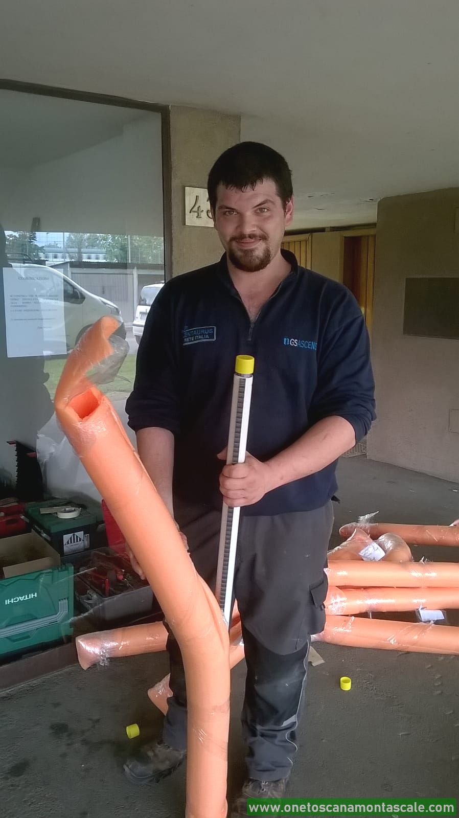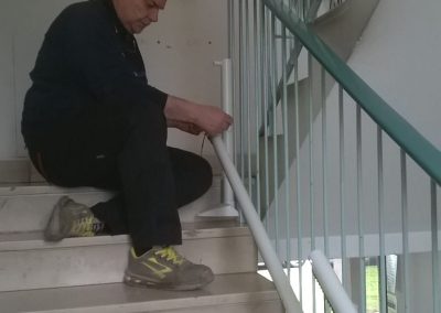 Vediamo qui di seguito alcune immagini con i tecnici al lavoro durante l’installazione; nelle immagini vediamo anche la cura che viene posta in tutti i dettagli: il tecnico toglie con attenzione una ad una le parti della guida che erano state precedentemente imballate con appositi materiali per evitare che potessero danneggiarsi o graffiarsi durante il trasporto, un piccolo accorgimento che, unito a tanti altri, è ciò che poi in concreto consente davvero di poter essere soddisfatti del lavoro e poter esclamare “ecco un’altra installazione perfettamente riuscita!”.