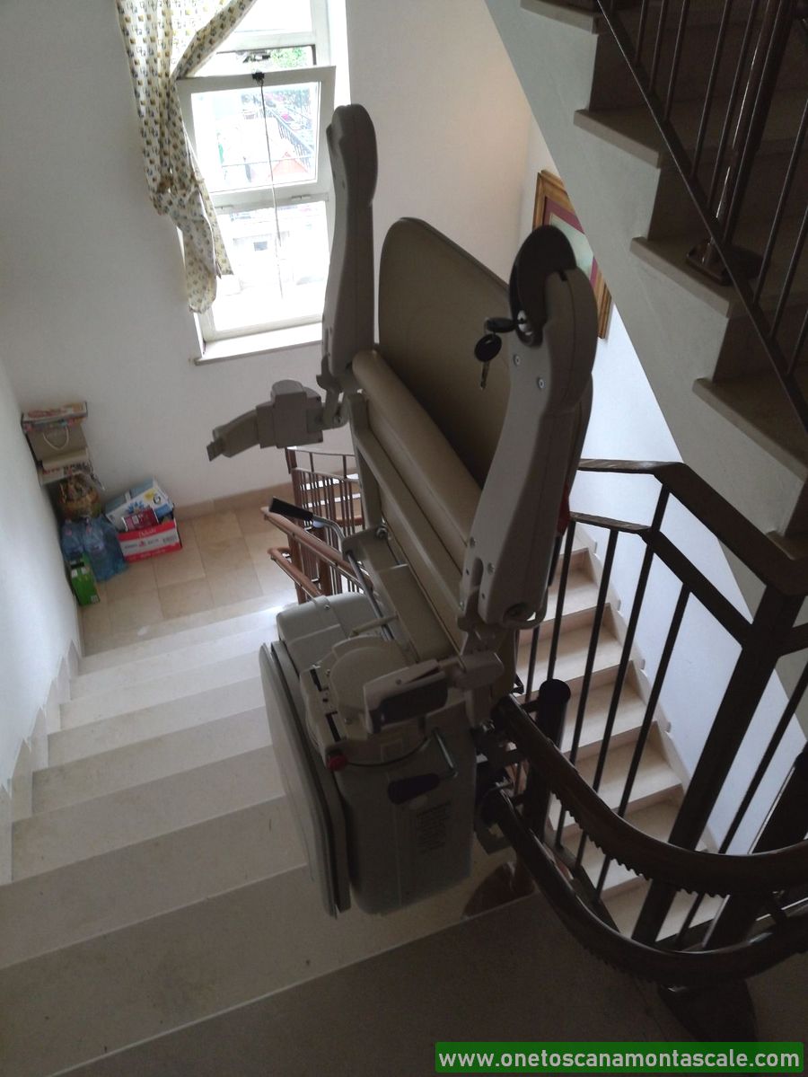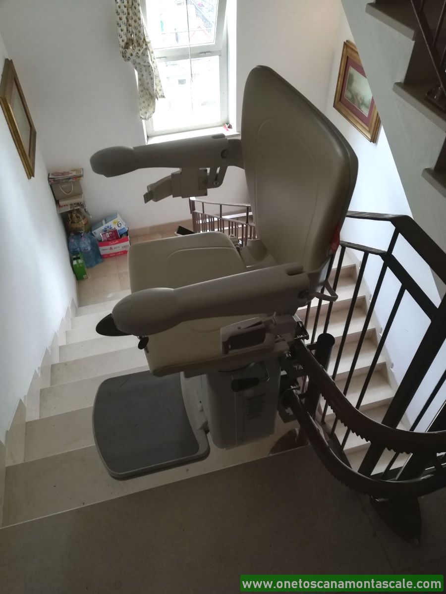 Il servoscala per anziani installato è un montascale a poltrona curvilineo “Style”, e si tratta di un montascale che, come abbiamo già più volte visto, è uno fra i modelli più richiesti in assoluto sia per le sue qualità costruttive sia per il suo caratteristico design particolarmente elegante.