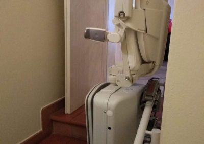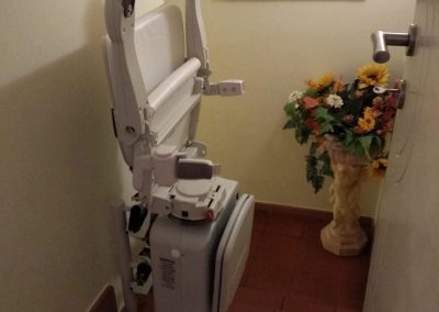 Si è optato per l’istallazione di un montascale a poltrona modello Style. Questo montascale è caratterizzato da una particolare attenzione per l’eleganza del design, ed è dotato di una guida bitubo. Si è optato per la poltroncina in tinta bianco avorio, che si inseriva bene nell’ambiente. Inoltre Il montascale Style, una volta richiuso, occupa un ingombro minimo.