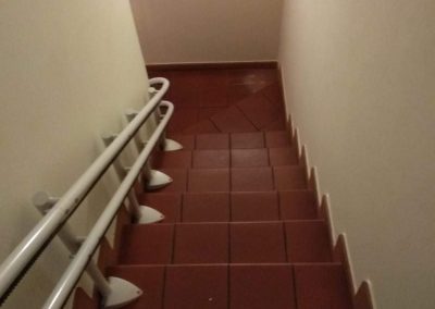 L’installazione di questo montascale andava eseguita in un ambiente che presentava una caratteristica scala rifinita in cotto inserita in un contesto elegante e ben curato. Dal punto di vista tecnico, la scala non era molto larga.