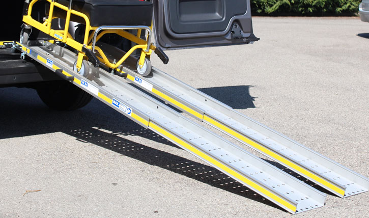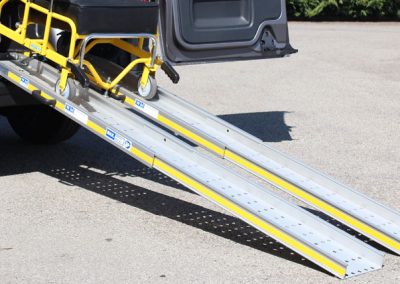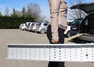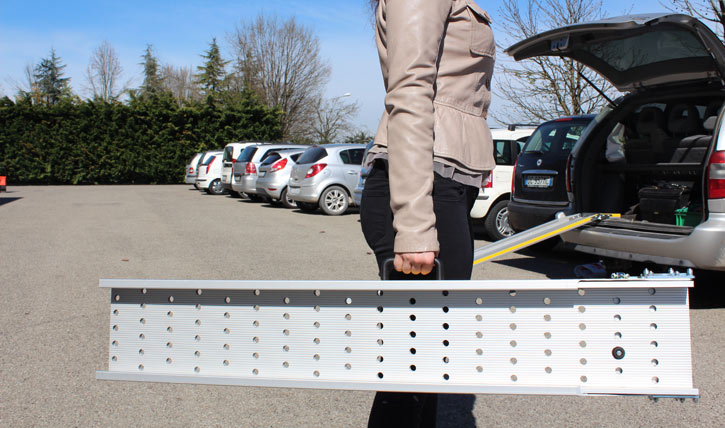 Coppia di rampe d’accesso telescopiche pratiche e semplici da usare, realizzate in alluminio antiscivolo con bordi anticaduta laterali. Sono dotate di maniglia laterale per facilitarne il trasporto. Adattabili a ogni dislivello e superficie, richiedono poco spazio quando non vengono utilizzate.